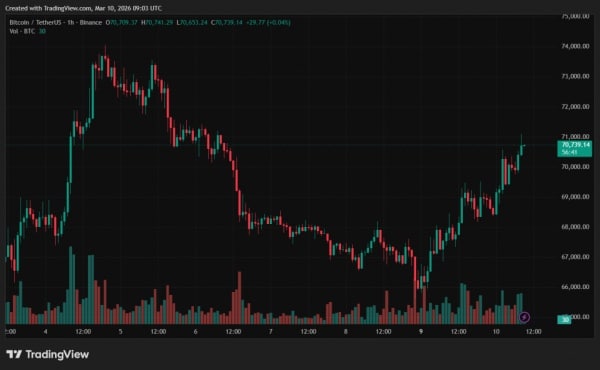 На момент написання статті біткоїн трохи знизився до позначки $70 000. За останню добу ціна активу піднялася на 3,7%. Позитивному настрою учасників ринку сприяла заява президента США Дональда Трампа про можливе швидке завершення операції в Ірані.