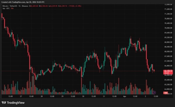 За останню добу ціна біткоїна зменшилася на 3%. На час написання перша криптовалюта торгується близько $66 400.