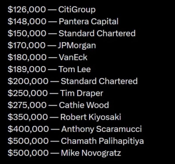 - Керівник інвестиційної фірми Galaxy Investment Partners Майк Новограц і венчурний капіталіст Чамат Паліхапітія виявилися найбільшими оптимістами, тому що передбачили подорожчання цифрового активу до $500,000.